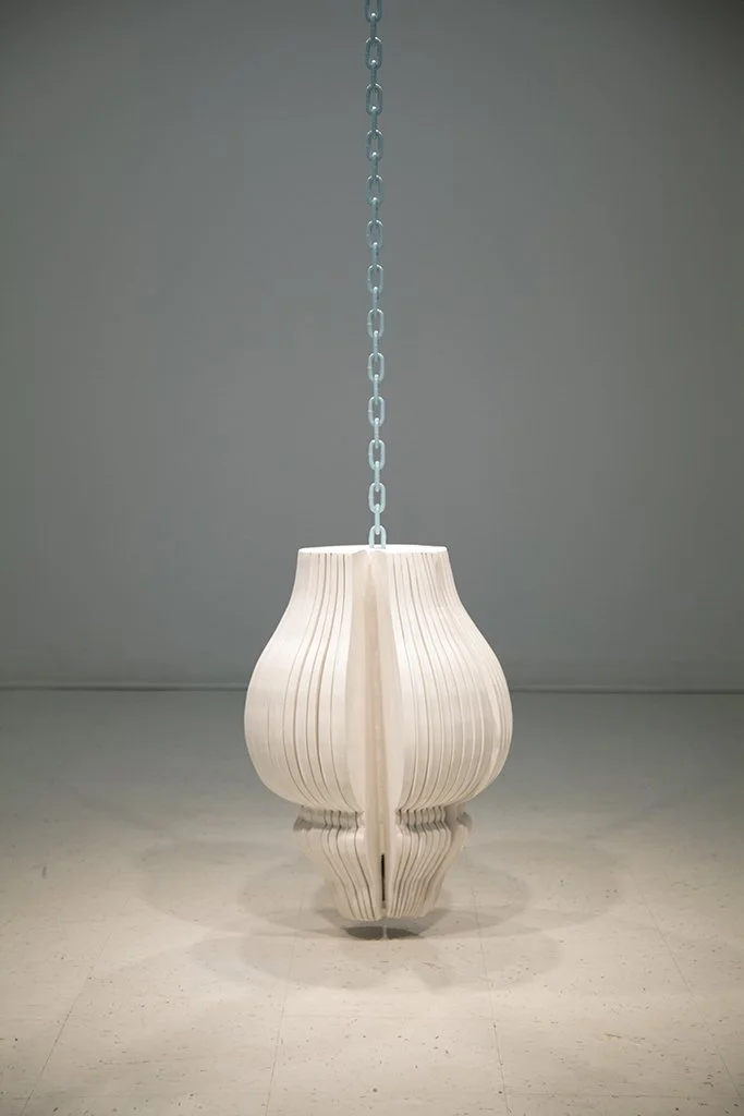 Sculptural pieces respond to the locations from the body that the silhouettes are derived from, taking on materials and installation considerations that push their characteristics.