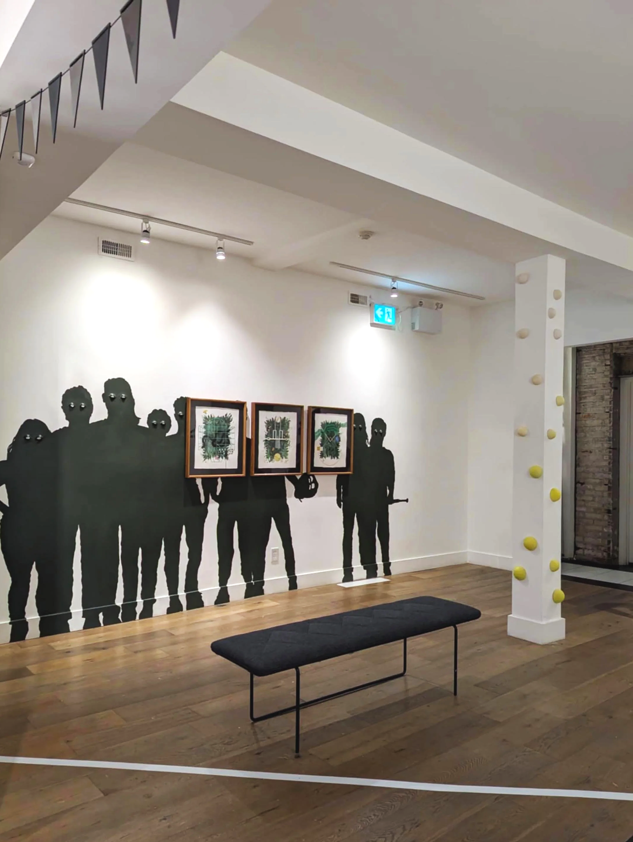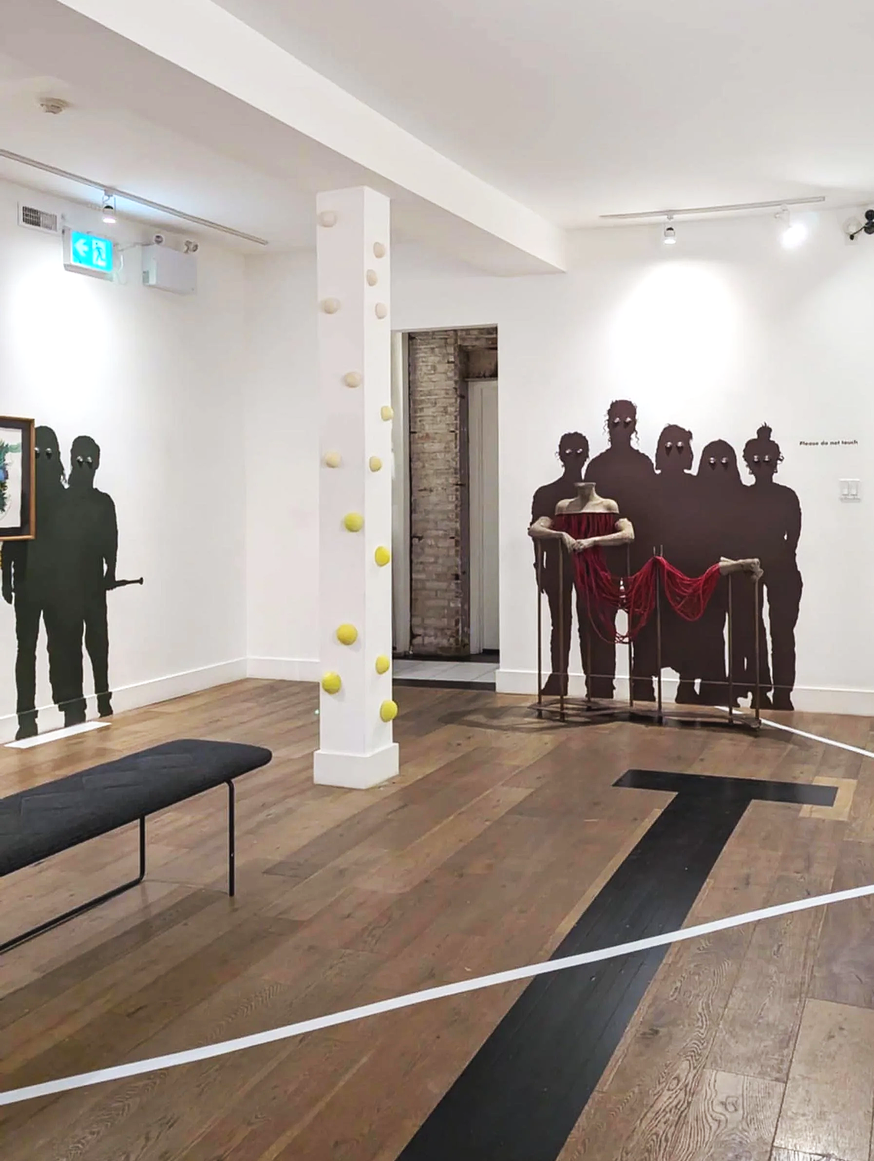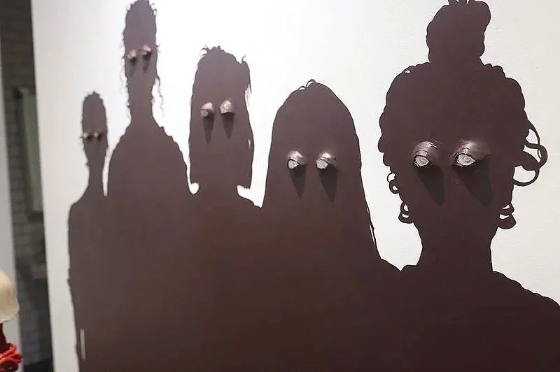 Glares from a Past, Glances of a Future presents retrospective work by the artist exploring the body and sport — work made in a time and atmosphere of exclusion and dismissal of non-male athletic bodies. These 2D works and large-scale sculptures are exhibited alongside life-sized silhouettes of real community members who are part of this conversation: teammates, studio mates, lifelong friends. They stand behind and around the work as witnesses, holding space for the change that has unfolded in these realms.